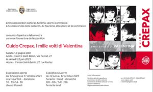 L’Assessorato Beni culturali, Turismo, Sport e Commercio della Regione autonoma Valle d’Aosta comunica che, a partire da sabato 12 giugno 2021, alle ore 10, sarà aperta al pubblico, presso il Centro Saint-Bénin di Aosta, la mostra Guido Crepax. I mille volti di Valentina. L’esposizione, dedicata ad uno dei più celebri e popolari maestri del fumetto d’autore, è organizzata dalla struttura Attività espositive e promozione dell’identità culturale e curata da Alberto Fiz in collaborazione con Archivio Crepax. Oltre cento opere compongono un allestimento spettacolare, in cui lo spettatore può attraversare ambienti tematici in dialogo tra loro, arricchiti da manichini, sagome tridimensionali e tappezzerie d’autore. Insieme alle tavole originali più emblematiche, la rassegna, divisa in sette sezioni, analizza la poliedrica indagine artistica di Crepax presentando inediti documenti d’archivio, copertine di dischi, oggetti di design, abiti, paraventi, studi per la pubblicità, grandi giochi tridimensionali e molto altro. Un ruolo di primo piano è affidato alla sua icona più celebre, Valentina, che ha superato i confini del fumetto per diventare un personaggio della contemporaneità, in grado d’influenzare la storia della moda e del costume. Valentina appare attraverso una serie di opere che ne descrivono l’unicità nella storia del fumetto in quanto la sua immagine nasce dalla contaminazione tra mito (l’attrice Louise Brooks) e realtà (la moglie Luisa). La fusione di queste due anime ha consentito di sviluppare un personaggio che riflette i differenti aspetti dell’universo femminile sopravvivendo, come le grandi figure del cinema e della letteratura, al suo autore. Per garantire la sicurezza sanitaria, si richiede che i visitatori indossino le mascherine. Il personale di sorveglianza indirizzerà il flusso del pubblico e gli utenti fruiranno di entrate/uscite differenziate. Nella sede espositiva sarà fatta rispettare la distanza minima di oltre un metro e l’afflusso sarà regolamentato in modo da evitare assembramenti.