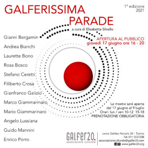 La ripartenza delle attività dell’Associazione Culturale Galfer20 coincide con un anniversario speciale, i cinque anni dalla sua fondazione. Per festeggiare questa ricorrenza non esisteva modo migliore che organizzare una collettiva con le opere degli artisti che dal 2016 hanno contribuito a mantenere viva l’Associazione, accanto ad una selezione di quelli che saranno i nuovi protagonisti degli eventi futuri. Galferissima parade, curata da Elisabetta Silvello e dall’Associazione Culturale Galfer20, inaugura giovedì 17 giugno, con un’apertura straordinaria dello spazio, dalle ore 16 alle ore 20. Dodici gli artisti protagonisti, le cui opere sono poste in dialogo fra loro per stimolare suggestivi spunti artistici. Il fine che l’Associazione Galfer20 persegue a partire dalla sua nascita, cioè creare un’integrazione fra Arte e Architettura, con una specifica attenzione al contesto urbano che ci circonda, è eloquentemente rappresentato dalle opere di Gianni Bergamin, poste a confronto con la Street-Photography del biellese Stefano Ceretti. Le materiche Mareggiate di Mario Giammarinaro sollecitano l’attenzione sui temi ambientali; gli oggetti di design di Angelo Lussiana, realizzati con una particolare tecnica di elaborazione del cartone, si connettono all’idea di recupero e di riciclo, un tema alla quale si riallaccia anche Laurette Bono le cui opere, eseguite con frammenti in vetro, sottolineano il potere di rinascita infinita di questo materiale. Gianfranco Galizio è presente con uno dei suoi Anonimi percorsi, una visione solo in apparenza inanimata. I vortici gestuali di Rosa Bosco catturano e coinvolgono gli osservatori, che possono divertirsi di fronte dalle spiazzanti macrofotografie di Marco Giammarinaro. Sono invece nuovi protagonisti di Galfer20 il giovane fotografo Andrea Bianchi, capace di immortalare con un calibrato bianco e nero spettacolari paesaggi della Valsesia e luoghi inusuali, ed Enrico Porro, che impreziosisce con un raffinato effetto damascato gli sfondi a monocromo sui quali sono delineate le sue protagoniste femminili. Anche Guido Mannini è alla sua prima esposizione nei locali di Galfer20, dove presenta uno dei suoi smalti astratti montati su intelaiature rotonde. Conclude la rassegna Filiberto Crosa, le cui opere ci regalano emozioni con i loro colori vivaci e con i piccoli oggetti disposti sulla tela che ci lanciano spunti di riflessione.