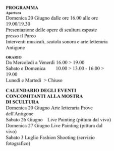 Apertura mostra: da sabato 19 giugno a domenica 17 ottobre 2021 il sabato dalle 14.00 alle 18.00 la domenica dalle 10.00 alle 12.00 e dalle 14.00 alle 18.00 oppure su appuntamento belmonteu@libero.it tel. 333 76 78 652         347 05 87 825