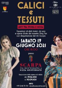 “Calici e tessuti” mette a confronto tale aspetto nelle diverse epoche, mantenendo saldo il lato artistico e intellettuale della ricerca del bello abbinato a un grande vanto del nostro Paese, ovvero l’artigianato, la sartorialità di pregio, che bene si abbina all’idea di eccellenza di una storica cantina come “Scarpa”.