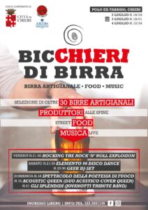 Manca pochissimo e poi Chieri avrà la sua prima, originale, festa della Birra Artigianale. L’evento, BicChieri di Birra, si svolgerà dal 2 al 4 luglio nell’area Ex Tabasso ed è organizzato da Pro Chieri, Ascom e Comune di Chieri. “L’idea è partita da Ascom e ha subito coinvolto la Pro Chieri – dice Luciano Paciello, assessore alle attività economiche del Comune di Chieri, che contribuisce all’evento con 15 mila euro – e rappresenta una novità assoluta per il Torinese, visto che la protagonista assoluta è la birra artigianale. Bicchieri di Birra vuole diventare una manifestazione di riferimento per diffondere la cultura craft, fare conoscere le tante sfaccettature di questo mondo ed incrementare, con un lavoro prima di tutto culturale, i bevitori di birra dei piccoli produttori nazionali, a discapito delle multinazionali che offrono prodotti pastorizzati e stilisticamente uniformi.” I rappresentanti locali saranno: