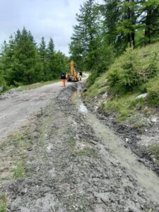 SI LAVORA SULLA PROVINCIALE 173 DELL’ASSIETTA PER LA REGIMAZIONE DELLE ACQUE, IL LIVELLAMENTO DEL PIANO STRADALE E LA POSA DELLA NUOVA SEGNALETICA