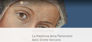 La Madonna delle Partorienti dalle Grotte Vaticane (ultimo decennio del XV sec.), il prezioso affresco realizzato da Antoniazzo Romano (1435-1508) alla vigilia del Giubileo del 1500, presentato per la prima volta al pubblico dopo un lungo e complesso restauro, si trovava in origine nel transetto meridionale della vecchia basilica, sopra l’altare della cappella Orsini. Durante i lavori per la costruzione del nuovo San Pietro, l’affresco fu staccato dalla parete e nel 1574 fu collocato in una nicchia dietro un altare a ridosso del muro che divideva l’antica chiesa dal cantiere del nuovo San Pietro. Qui continuò a raccogliere la devozione dei fedeli e, soprattutto, delle donne in attesa del parto. Rimosso anche da questo luogo nel 1605, venne poi portato nelle Grotte Vaticane e nel 1616 trovò definitiva collocazione in una cappella appositamente ricavata sotto il pavimento della basilica. L’immagine della Madonna delle Partorienti – o “degli Angeli” – come veniva chiamata nel Cinquecento – venne allora ridotta di dimensione, perdendo l’originaria mandorla con variopinte figure di cherubini, che tuttavia si possono ammirare nell’inedita e attendibile proposta ricostruttiva presentata in mostra.