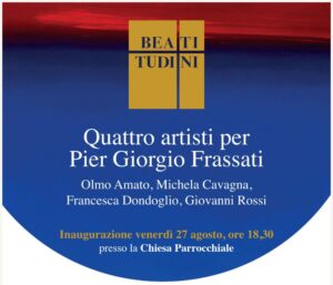 È prevista venerdì 27 agosto alle 18,30, nella Chiesa Parrocchiale di Sant’Eusebio Prete a Pollone (Biella), l’inaugurazione di Beatitudini. Quattro artisti per Pier Giorgio Frassati, la mostra diffusa dedicata al beato a cura di Irene Finiguerra. I quattro artisti in mostra sono Olmo Amato, Michela Cavagna, Francesca Dondoglio e Giovanni Rossi, giovani talenti che attraverso i loro lavori indagano i temi che più furono cari a Frassati: l’amore per la montagna, la purezza di cuore e di mente dei bambini non ancora ingabbiati in meccanismi sociali, la carità cristiana, la contemplazione, la rinascita. Le quattro opere rimarranno esposte fino domenica 7 novembre nella Chiesa Parrocchiale di Sant’Eusebio Prete, nella Chiesa della Santissima Trinità e nella Chiesa dei SS. Fabiano e Sebastiano.