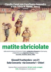 dalla testimonianza di Antonio Colaleo, prigioniero di guerra in Germania, a Balde Moussa, prigioniero di pace in Italia. Claudio Canal con CoroTeatro Bequadro e con Silvia A. Genta