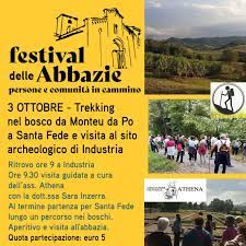 - Domenica 3/10 Camminata Dal romano al romanico – Trekking guidato dall’associazione Amici dei Sentieri da Monteu da Po a Santa Fede e Visita guidata al sito archeologico di Industria a cura dell’associazione culturale Athena