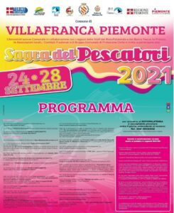 Da venerdì 24 a martedì 28 settembre a Villafranca Piemonte torna la Sagra dei Pescatori organizzata dall’amministrazione comunale in collaborazione con la Pro Loco, le associazioni e i comitati locali. Anche quest’anno la Città Metropolitana di Torino ha concesso il suo patrocinio alla manifestazione. Gli appuntamenti gastronomici sono in programma nel RistoPalatenda, mentre lo spettacolo pirotecnico-musicale di sabato 25 alle 21,30 si tiene, com’è tradizione, sul Po. Venerdì 24 e sabato 25 gli appuntamenti enogastronomici iniziano alle 19 con il gran fritto misto di mare e proseguono con la Pasta di Mezzanotte. Domenica 26, lunedì 27 e martedì 28 si cena invece con il pesce d’acqua dolce, procurato dai pescatori villafranchesi. Le serate musicali spaziano dalla band che propone i grandi successi di Zucchero, venerdì 24, ai Trelilu, attesi per domenica 26. Per accedere al RistoPalatenda è consigliabile prenotare il giorno antecedente, chiamando il numero telefonico 366-4906502. L’inaugurazione ufficiale della Sagra è in programma sabato 25 settembre alle 17 nell’ex Monastero e prevede anche la premiazione del concorso fotografico “Open the door: esci e scatta”, le cui opere sono esposte nel salone parrocchiale in piazza Santo Stefano. Sempre durante l’inaugurazione si tiene la premiazione del concorso per gli esercizi commerciali “I pesci in vetrina”. Una mostra, allestita nella chiesa del Gesù è dedicata allo scomparso artista Mattia Fassi, le cui opere dialogano con le sculture della mostra “Il bosco in una stanza”, realizzate da Nino Perassi con le radici degli alberi ed esposte in via San Sebastiano 28. Domenica 26 settembre dalle 8 alle 16 in via Roma si tiene la Fiera zootecnica, che comprende la mostra delle razze bovine Piemontese e Frisona italiana, la fiera della