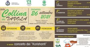 A Pino Torinese sta per tornare la sagra dei prodotti agricoli locali “Dalla Collina alla Tavola”. Un evento organizzato dal Comune di Pino Torinese, in collaborazione con Centro Incontri Luigi Tosco e Pro Loco Pinese, per la promozione e degustazione dei prodotti tipici del territorio. Domenica 26 settembre, presso il Campetto da basket del giardino comunale di via Molina, a Pino Torinese, dalle ore 17 alle ore 23, gli espositori presenteranno al pubblico le proprie aziende e i loro prodotti ortofrutticoli, florovivaistici e di allevamento, e saranno a disposizione per rispondere alle curiosità dei visitatori. Inoltre la serata offre a tutti la possibilità di fermarsi per la cena grazie ai quattro menù ricchi e variegati proposti durante la sagra, preparati utilizzando esclusivamente i prodotti locali esposti dai produttori nei loro stand. Ricordiamo che, nel caso in cui si desiderasse partecipare alla cena in programma, nel rispetto delle normative anti-Covid è richiesta la prenotazione a questo link: https://www.eventbrite.com/…/dalla-collina-alla-tavola… Per i più piccoli sarà presente il LUDOBUS con tanti giochi e animazione. E, in serata, CONCERTO DEI “KORISHANTI“, uno dei più apprezzati gruppi di world music del panorama italiano! Secondo le attuali disposizioni di legge, l’accesso a tutta la manifestazione è consentito solo ai possessori di Green Pass (sopra i 12 anni).