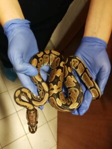 È stato affidato alle cure dei sanitari del Centro Animali Non Convenzionali di Grugliasco il Pitone reale che una cittadina di Coassolo ha recuperato nel cortile di un’abitazione a Lanzo e consegnato ai sanitari del CANC. L’animale, attualmente ricoverato all’ospedale della Struttura didattica speciale Veterinaria dell’Università di Torino, non presenta ferite ed è in buono stato di salute, a parte uno stato di dimagrimento a cui si sta cercando di ovviare. Il Pitone reale (Python regius), detto anche Pitone palla per via della posa caratteristica che assume, se disturbato, nascondendo la testa tra le spire, è un serpente costrittore della famiglia dei Pitonidi, che difficilmente supera i 150 cm di lunghezza. È un animale esotico, che alle nostre latitudini non può essere abbandonato all’aperto, perché non sopporterebbe le temperature invernali: per questo l’esemplare recuperato a Lanzo è stato ricoverato al CANC. Presenta un colorito brunastro con macchie e striature nere che gli donano una livrea particolarmente apprezzata. La testa ha una peculiare forma detta a cuore, che lo contraddistingue rispetto soprattutto ai boidi. Il carattere carattere timido e difficilmente aggressivo, le modeste dimensioni e le migliaia di possibili variazioni genotipiche rendono il Pitone reale indicato per l’allevamento da parte degli amatori. Non è consigliato maneggiare l’animale a lungo, in quanto è facilmente stressabile e, oltretutto, lo stress potrebbe causare prolungati digiuni. Il Pitone reale si nutre principalmente di piccoli roditori come Gerboa topi o Gerbilli. Può saltare alcuni pasti nel periodo antecedente alla muta o nella fase di adattamento alle nuove condizioni di vita in cattività. Talvolta, da novembre a marzo, smette volontariamente di nutrirsi, senza che ciò rechi danno alla sua salute. Il salvataggio del Pitone reale a Lanzo rientra tra gli interventi previsti dalla convenzione attivata dalla Città Metropolitana, che vede l’impegno diretto della Struttura didattica speciale Veterinaria dell’Università di Torino per il recupero in campo della fauna selvatica, oltre che del personale della Funzione specializzata tutela fauna e flora della Città metropolitana. Nel 2020 il CANC ha soccorso e curato oltre 3.700 animali selvatici, mentre nel 2021 la cifra ha già superato quota 4.450.