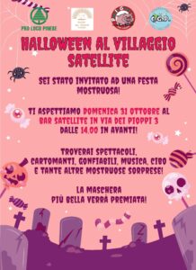 Appuntamento per una vera e propria FESTA MOSTRUOSA! In occasione della ricorrenza di Halloween, infatti, appuntamento presso il Bar Satellite (via dei Pioppi, 3) con spettacoli, cartomanti, musica, cibo e tante sorprese mostruose! Verrà inoltre premiata la maschera più bella!