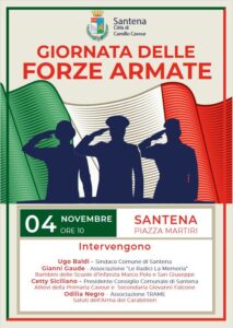 Il Comune di Santena celebra anche quest’anno la Giornata dell’Unità Nazionale e delle Forze Armate, in programma giovedì 4 novembre. Le celebrazioni si svolgeranno a partire dalle 10 in Piazza Martiri della Libertà, nei pressi della lapide dei Caduti di tutte le guerre. La commemorazione si svolge ogni anno alla stessa data dal 1919 per onorare la vittoria italiana nella Prima Guerra Mondiale. Per questa edizione la Città di Santena ha deciso di omaggiare due carabinieri, in servizio nella stazione di comando cittadino, che sono andati oltre il proprio dovere supportando una donna incinta emigrata dalla Nigeria. La storia, giunta alle cronache locali, è diventata di dominio pubblico, mettendo in luce l’umanità dei due militari e dell’Arma dei Carabinieri. Proprio per questo le celebrazioni avranno un sapore ancora più profondo: nel 2021 cade infatti il centenario della tomba del Milite Ignoto, il soldato morto nella Prima Guerra Mondiale che non è stato identificato ed è stato sepolto nel monumento dell’Altare della Patria di Roma. La sua tomba rappresenta simbolicamente tutti coloro che sono morti nel conflitto e meritano di essere ricordati. Giovedì si partirà con i saluti istituzionali di Ugo Baldi, Sindaco di Santena, che saranno seguiti dall’esecuzione dell’inno nazionale e dalla deposizione delle corone. Seguiranno gli interventi di Gianni Gaude dell’associazione “Le Radici La Memoria”, di Cetty Siciliano, Presidente del Consiglio Comunale di Santena e di Odilia Negro, Presidente dell’associazione TraMe. Alla cerimonia parteciperanno alcune classi delle scuole dell’infanzia Marco Polo e San Giuseppe, della primaria Cavour e della secondaria Giovanni Falcone . Le celebrazioni si concluderanno, intorno alle 11, con la consegna delle targhe ai due Carabinieri Giuseppe Caruso e Antonio Ferrara.«E’ bello raccontare una storia positiva, una volta ogni tanto – sottolinea la presidente Siciliano – Ed è giusto far sapere che i due carabinieri sono andati ben oltre il loro dovere. Hanno realizzato il concetto di “prendersi cura”, facendo squadra con gli operatori e con i sanitari dell’ospedale». L’intervento conclusivo della giornata sarà quindi quello dell’Arma dei Carabinieri. «Sono trascorsi 103 anni dal termine della Prima Guerra Mondiale – spiega il Sindaco di Santena Ugo Baldi – e questa giornata è sopratutto l’occasione per ricordare chi, come l’Arma dei Carabinieri, è in prima linea per tutelare la nostra incolumità. I due carabinieri di questa storia ne sono l’esempio: non avevano nessun obbligo nei confronti di Gift, ma sono andati oltre il loro dovere, evidenziando quanta umanità ed empatia abbiano queste persone nei confronti del prossimo. Come accadde nei conflitti mondiali, ancora oggi questi ragazzi ogni giorno si prodigano per la Patria, mettendo in secondo piano se stessi.– prosegue il primo cittadino santenese – In questa Giornata, come avviene da oltre 100 anni, ritorna alla luce il dolore per l’orribile conflitto bellico che ha però avuto il grande pregio: ha avvicinato e ha fatto incontrare culture e tradizioni che mai prima di allora si erano accostate. Ha fatto capire a quei ragazzi che, pur con diversi dialetti e fisionomie, erano figli della stessa patria. Senza il martirio di questi ragazzi, senza oggi il senso del dovere e di comunità delle Forze dell’Ordine, non saremmo come siamo e non saremmo quello che siamo. Invito quindi tutti le associazioni e i cittadini a partecipare a questa ricorrenza – conclude – per rendere omaggio ai nostri soldati di ieri e ai nostri militari che ancora oggi vegliano su di noi»