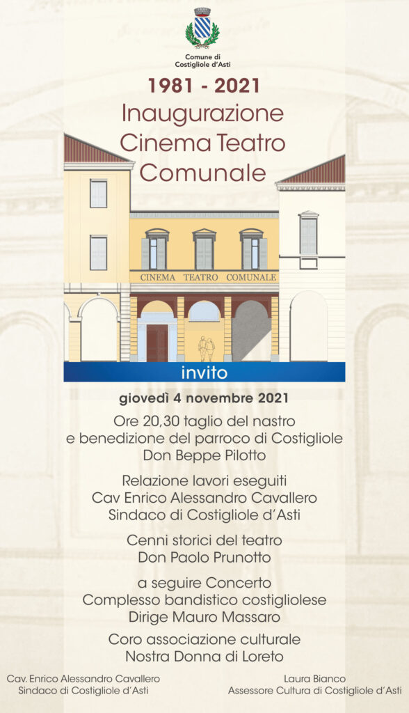 Costigliole d’Asti. Si inaugura il Cinema Teatro Comunale di Redazione · 1 Novembre 2021 Visto da: 245