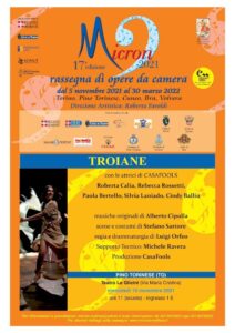 Anche quest’anno la Rassegna di Opere da Camera “Micron” fa tappa a Pino proponendo uno dei suoi bellissimi spettacoli. Mercoledì 10 novembre alle h. 11,00 (perché rivolto in particolare agli studenti del nostro Istituto Comprensivo) andrà in scena “Troiane”, spettacolo prodotto da CasaFools. Nel cast anche l’attrice Roberta Calia, cresciuta a Pino Torinese. E pinese è anche Antonella Lo Presti storica ideatrice e animatrice della Rassegna Micron. Per coloro che vorranno assistere allo spettacolo (fino ad esaurimento posti) il prezzo del biglietto è di 5 euro.