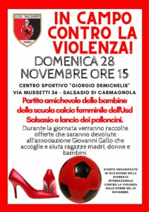 CARMAGNOLA, CALCIO. IL SALSASIO FEMMINILE IN CAMPO CONTRO LA VIOLENZA IL 28 NOVEMBRE