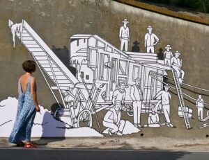 Con Mario Guglielminetti, Livio Genesio e i ragazzi di Yepp Langhe. Restituzione alla cittadinanza dei risultati dell’opera di arte pubblica open air realizzata dallo street artist grazie alla Fondazione Bottari Lattes e al Progetto europeo ETI