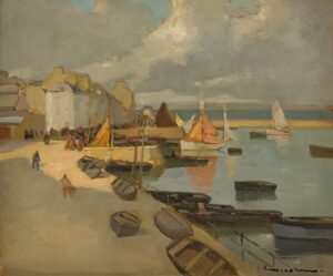 Presentato la prima volta nel 1973 nella rassegna Montparnasse e la Scuola di Parigi e, l’anno successivo, protagonista di una mostra antologica corredata dal catalogo generale della sua opera a cura di Angelo Mistrangelo, Henry Maurice Cahours, dopo numerose personali di cui l’ultima nel 2016, torna nelle sale della Galleria a raccontarci, attraverso una trentina di opere tra oli e acquerelli di varie dimensioni, il suo mondo pittorico: paesaggi della Bretagna, scorci di Montmartre, vedute della Senna, un universo fatto di luminose marine, porticcioli con pescatori, solitari viali alberati, spiagge e piccoli borghi animati da figure. Nelle opere di Cahours colpiscono e continuano a stupire il sottile clima poetico e la limpida leggerezza della rappresentazione, la capacità di fermare la luce sulla tela, di giocare con le sfumature e creare armonie. Nel suo dipingere, il ruolo principale appartiene sempre agli elementi atmosferici, come bene spiega egli stesso: “Io non sono uno di quei grandi artisti che ricreano la natura… né di quelli che offrono al pubblico una vita interiore che sembra un rebus. Io non sono che un vecchio pittore, per il quale l’aria e la luce sono stati e saranno sempre i principi fondamentali della pittura”.