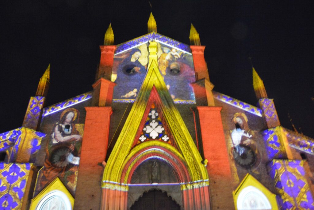 Da ieri sera Chieri accende le luci di Natale per una festa che tutti vogliamo più serena e più bella. La facciata del Duomo splende dei colori videoproiettati della Pala Tana, capolavoro del primo Cinquecento che con la sua Natività rende ancora più prezioso il battistero della cattedrale chierese. In luce anche l’Arco e San Bernardino, oltre alle vie e piazze del centro decorate come da tradizione. (le foto sono di Luciano Berruto)