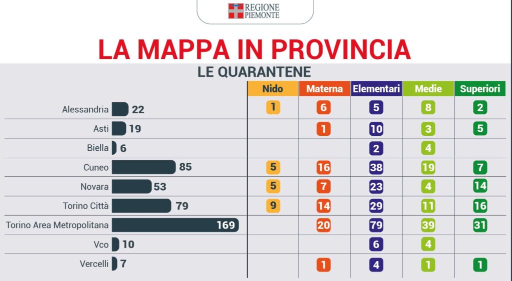MONITORAGGIO NELLE SCUOLE PIEMONTESI: AUMENTANO FOCOLAI E QUARANTENE NELLE CLASSI. ECCO DOVE E COME