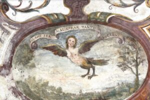 Gli affreschi della volta del piccolo ambiente sono uno dei più importanti esempi di pittura tardomanierista in Piemonte. Realizzati da Jan Kraeck, italianizzato Giovanni Caracca, intorno al 1585 per volere di Carlo Emanuele I di Savoia, coniugano la cultura degli emblemi, che conosce notevole fortuna in epoca umanistica e rinascimentale in tutta l’Europa, con il gusto per la decorazione a grottesche che si diffonde in seguito alla scoperta della Domus Aurea a Roma all’inizio del Cinquecento. Caracca per oltre trentacinque anni, dal 1568 al 1607, operò alla corte dei duchi di Savoia Emanuele Filiberto e Carlo Emanuele I e venne apprezzato incondizionatamente per le sue capacità di disegnatore, ritrattista, pittore su tavola, tela e ad affresco, e anche di “controllore generale di nostre fortezze”. Il percorso multimediale attraverso l’uso delle tecnologie immersive coinvolgerà i visitatori delle “Fantastiche Grottesche” in un colloquio ideale con l’autore degli affreschi, Giovanni Caracca. Il pittore fiammingo racconterà la storia dei personaggi che per brevi o lunghi periodi hanno abitato il castello e approfondirà il tema delle campagne decorative, illustrando i soggetti e il loro significato. Una selezione di opere dalle collezioni di Palazzo Madama, infine, arricchirà la narrazione con ritratti e oggetti dell’epoca, seguendo un doppio filo conduttore: la ritrattistica dei duchi di Savoia e il tema formale della grottesca nelle sue varie declinazioni.