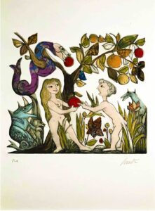 A 100 anni dalla nascita di Luzzati, una mostra per far scoprire un Lele “diverso” resa possibile dall’incontro al “Bostrico” di Albissola con il gallerista Alfredo Meconi, amico e stampatore per anni di Luzzati. Assoluta novità e particolarità delle opere su carta, nata dall’intuizione di Alfredo, fu ritagliare le lastre di zinco con un seghetto ed ottenere così sagome di diversi personaggi in modo tale da farli divenire protagonisti sempre differenti in ogni incisione: questa tecnica permise di disporre i pezzi di lastre ritagliate a mo’ di scenografia teatrale o teatrino per burattini. I personaggi ritagliati potevano esser collocati in posizioni diverse facendo sì che le figure di una lastra potessero anche combinarsi con i personaggi di un’altra lastra incisa e ritagliata al fine di ottenere una differente immagine. L’inserimento di elementi di collage in fase di stampa e coloriture a mano in post-stampa conferivano forza e vivacità cromatica all’opera. Tutti i lavori che così nascevano potevano considerarsi ” Opere Uniche Multiple”. In mostra una settantina di acqueforti ed acquetinte con interventi di acquerellature a mano e collage.