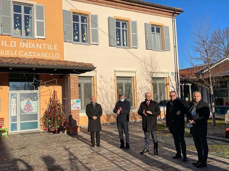 E’ stata inaugurata la nuova scuola dell’infanzia Cassanello della frazione Motta di Costigliole, al termine dell’importante intervento di manutenzione. Si è restituita ai piccoli ospiti e alle loro famiglie con spazi scolastici completamente rinnovati, belli ma soprattutto sicuri e funzionali. Si è tenuta nella mattinata di lunedì 20 dicembre la cerimonia per la fine dei lavori di ristrutturazione che hanno coinvolto il plesso scolastico. L’evento, che si è tenuto nella palestra rinnovata dell’istituto, a cui si si aggiungono alle diverse opere che in questi anni l’Amministrazione ha realizzato negli edifici scolastici, anche per ciò che riguarda la messa in sicurezza, ha visto la partecipazione del vice Presidente della Regione Piemonte Fabio Carosso, del Sindaco Enrico Cavallero, del Presidente dell’ente Paolo Porrino, di don Marco Andina, vicario generale della Diocesi di Asti, del parroco di Motta, del presidente Lions Club Costigliole, insieme alle dirigenti, le maestre e i bambini. Una bellissima realtà di questo territorio, come ha sottolineato Carosso, che ogni giorno fornisce servizi fondamentali a più di 100 famiglie, non solo di questo Comune, ma anche delle località vicine. In quest’occasione si è voluto ricordare per il suo operato il Prof. Luigi Solaro, mancato nel 2019, presidente per molti anni dell’asilo, consegnando una targa ricordo ai familiari. Il sindaco è soddisfatto di restituire ai bambini e agli abitanti del territorio una struttura adeguata e decorosa. L’amministrazione si è impegnata a mantenere aperta la scuola della Motta: un edificio che necessitava di importanti lavori di sistemazione della palestra, della facciata e degli interni, ma caratterizzato da un grande valore, poiché situato in un luogo particolare e ricco di stimoli per i bambini, che consente di servire una utenza vasta anche dalle campagne. Costigliole sta infatti investendo sulle scuole del proprio Comune, considerandole una priorità, il luogo in cui il futuro si plasma ed in cui i bambini formano la loro personalità. Il Sindaco Cavallero, dopo il taglio del nastro, passa ad illustrare i lavori di riqualificazione della Scuola dell’infanzia Fine modulo