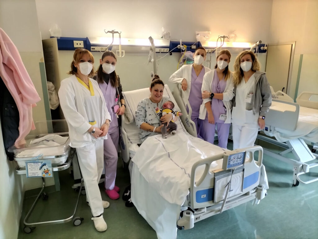 E’ nato alle 5,30 di stamattina, lunedì 3 gennaio, ed è il primo nato del 2022 all’ospedale Maggiore di Chieri. Si chiama Pietro, pesa 3 chili e 380 grammi. Mamma Giada Manzon e papà Andrea Onardi sono di Poirino. Nella foto: Pietro con la mamma e il personale del reparto.