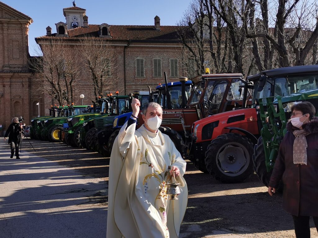 Moltissimi trattori domenica 16 gennaio a Casanova per la tradizionale Messa e Benedizione degli animali, delle attrezzature, dei lavoratori in campo agricolo e del creato in occasione della festa di Sant’Antonio Abate, protettore dei contadini.Oltre alle numerose persone presenti, tra cui molti giovani agricoltori locali c’erano anche il Sindaco di Carmagnola Ivana Gaveglio, l’amministrazione comunale carmagnolese, molti sindaci del territorio tra cui il primo cittadino di Chieri Alessandro Sicchero. Presenti anche l’onorevole Augusta Montaruli, il Presidente del Consiglio Regionale del Piemonte Stefano Allasia, l’assessore regionale Maurizio Marrone, oltre ad alcuni Consiglieri Regionali.Durante l’omelia il parroco di Salsasio, Casanova e Vallongo don Iosif Patrascan ha ricordato quanto hanno riportato i giornali locali lo scorso anno: “Si è parlato di collaborazione tra gli enti, tra Comune, Regione ed enti dello Stato e Chiesa, questo credo sia un fattore positivo. Il creato, l’ambiente e la natura vanno difesi sempre e comunque”.Il Parroco ci tiene inoltre a ringraziare tutti coloro che hanno organizzato e collaborato per la realizzazione della celebrazione ed in particolare tutti coloro che hanno permesso di svolgere la Benedizione in sicurezza tra cui il Comandante dei Carabinieri di Carmagnola Maresciallo Piero Massimo Fracella, i vigili urbani della città e le Giav per essere sempre presenti. Al termine della Benedizione don Iosif ha poi simbolicamente baciato la terra come segno di rispetto e amore verso il creato di Dio, come faceva ogni giorno suo padre in Romania, tramandando anche una tradizione semplice ma simbolica.Dopo la Messa e la Benedizione sul piazzale antistante la storica Abbazia di Casanova i numerosi trattori hanno poi fatto un corteo pacifico ma molto simbolico per dire ancora una volta No al deposito di scorie nucleari a Casanova.Al pomeriggio sul piazzale della chiesa nuova di Salsasio sono stati benedetti altri trattori, animali sia domestici che da allevamento e tutti i fedeli.