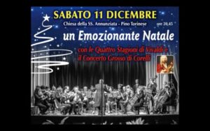 Vivaldi con le Quattro Stagioni e Corelli con il Concerto Grosso “Fatto per la Notte di Natale” sono stati i protagonisti dell’emozionante Concerto che l’Associazione Santa Maria del Pino ha proposto lo scorso sabato 11 dicembre presso la Chiesa SS Annunziata (via M. Cristina, 13 Pino). Il Concerto rientra nella Rassegna “Classica a Pino” giunta alla sua VII edizione: un’iniziativa che riscuote sempre un grande successo ed è la dimostrazione concreta di come istituzioni diverse possano collaborare tra di loro.