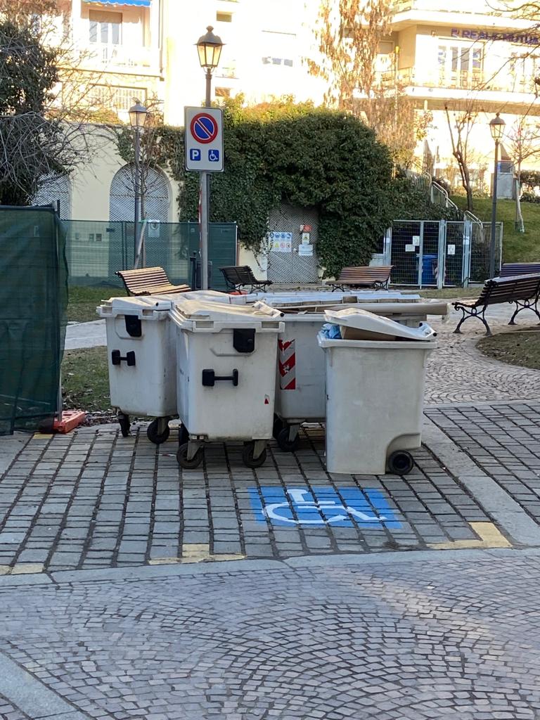 Chieri. “Cassonetti nel posto dei disabili, che vergogna…”