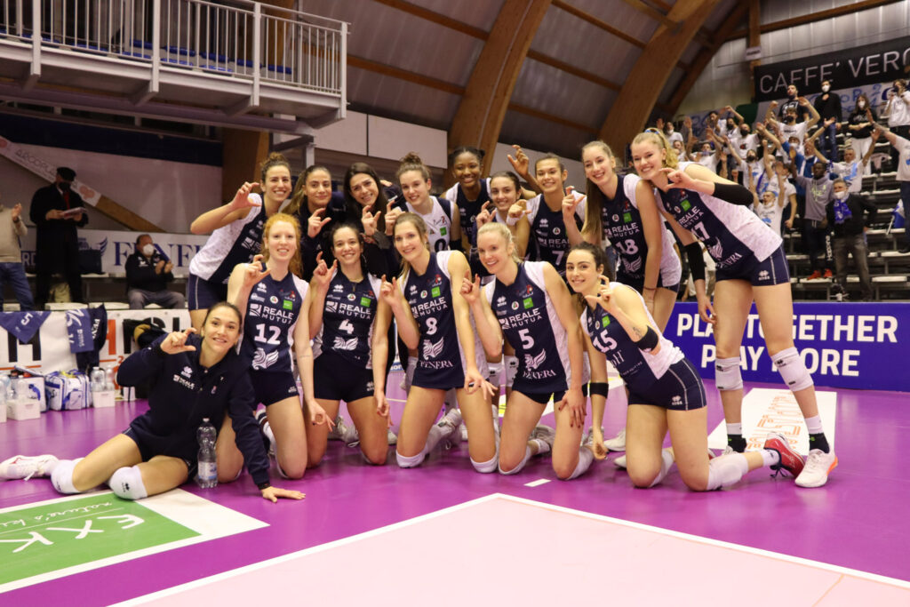 Felice ritorno in campo per la Reale Mutua Fenera Chieri ’76. Nella prima partita del 2022, al rientro al PalaFenera dopo più di un mese, le biancoblù di Giulio Cesare Bregoli superano la Megabox Ondulati Del Savio Vallefoglia e riprendono la loro striscia positiva portando le vittorie consecutive a cinque (sei contando anche la Coppa Italia), con 13 punti su 15 conquistati nelle ultime cinque gare disputate in campionato. L’incontro termina 3-0 con parziali 25-19, 25-18 e 25-22. Prive di Villani, in tribuna per un leggero infortunio accusato in allenamento, in un’ora e mezza le chieresi conducono vittoriosamente in porto un incontro quasi sempre condotto, mettendo in campo quella pazienza, quell’attenzione e quella concentrazione mancati nel girone d’andata quando persero 3-1. Per la Reale Mutua Fenera Chieri ’76 una delle note più positive della giornata è senza dubbio la prova del capitano Elena Perinelli: entrata nel finale del primo set, non esce più, realizza i primi attacchi vincenti da quando è tornata dall’infortunio, e alla fine viene premiata MVP. Nel tabellino spiccano anche i 18 punti di Grobelna, miglior realizzatrice al pari di Koshelena, l’ultima ad arrendendersi fra le marchigiane propiziando nel terzo set una rimonta da 22-15 a 22-21.