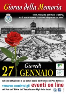 In occasione del Giorno della Memoria 2022 il Comune di Pino Torinese proporrà, attraverso il sito web istituzionale e la pagina Facebook, diversi momenti di riflessione e sensibilizzazione realizzati da Polo del ‘900 e Associazione Figli della Shoah.