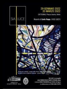 Mostra in ricordo di Carlo Rapp, nel primo anniversario della morte, che si terrà nella Cattedrale di Biella dal 29 gennaio al 20 marzo. Saranno esposti un cartone preparatorio per vetrata, due sculture in marmo e i bozzetti della Via Crucis della chiesa di Pavignano.