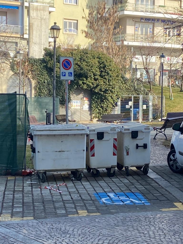 Chieri, cassonetti nel parcheggio disabili: “Sono sempre lì…”