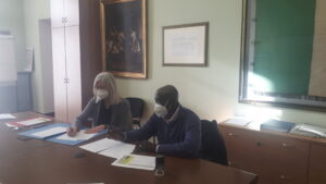Nella fotografia : la firma della convenzione da parte del Sindaco Ivana Gaveglio e del Sindaco di Kassaro, Yacouba Diakitè.