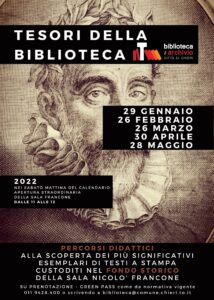 A seguire, apertura straordinaria della Sala Francone per un percorso didattico alla scoperta dei volumi di pregio del fondo storico