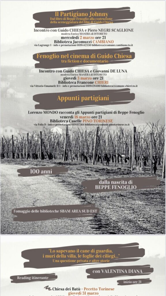 Chieri, Biblioteca Civica. Fenoglio nel cinema di Guido Chiesa tra fiction e documentario