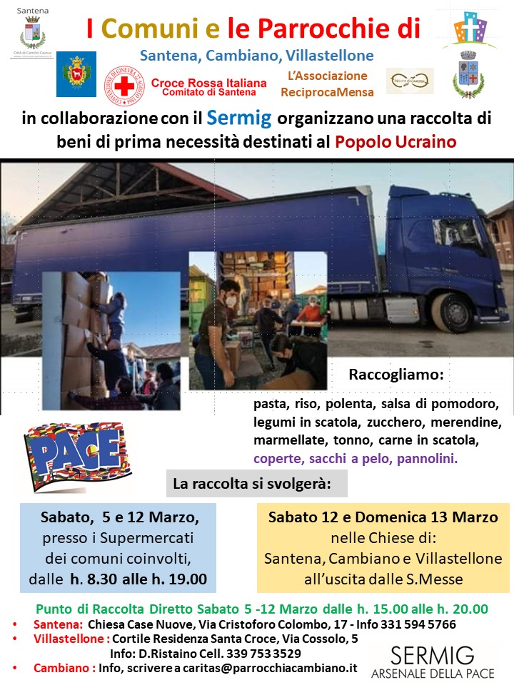 Santena, Cambiano e Villastellone per l’Ucraina: raccolta beni di prima necessità di Redazione · 1 Marzo 2022 Visto da: 283
