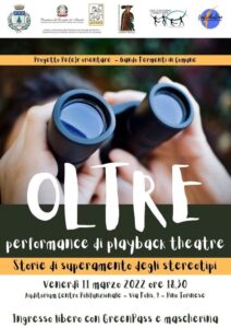 Proseguono le azioni in programma nell’ambito di “Pe(e)r Orientare”, il progetto di sostenibilità sociale ed ambientale, inclusione ed eguaglianza di genere che si rivolge a giovani dai 16 ai 35 anni. Un progetto DEI giovani PER i giovani, nell’ambito del quale viene proposta l’iniziativa “OLTRE – Performance di playback theatre: storie di superamento degli stereotipi”.