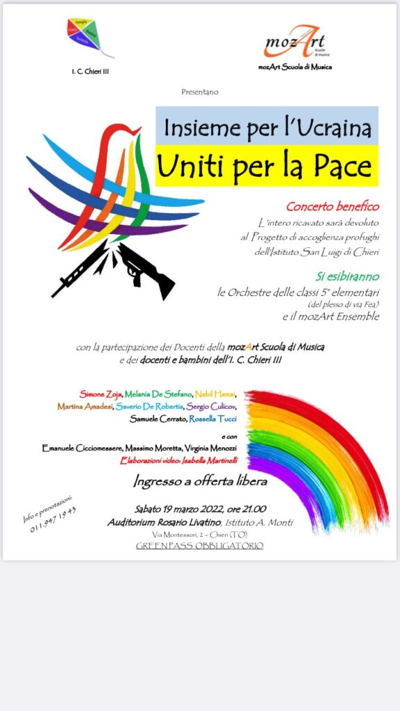 Chieri. Al Monti Concerto benefico “Insieme per l’Ucraina. Uniti per la Pace”