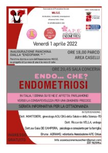 A chiusura del mese dedicato alla donna, in cui ricorre anche la giornata dedicata all’Endometriosi, abbiamo deciso di organizzare una giornata per informare e sensibilizzare le cittadine chieresi con una conferenza a ingresso libero in Sala Conceria, venerdì 1 aprile alle ore 20,45.Nel pomeriggio del medesimo giorno, alle ore 18, sarà inaugurata anche una panchina gialla nel giardino dell’Area Caselli.La diagnosi precoce è fondamentale per una malattia di cui si parla troppo poco, che attualmente non ha ancora una cura vera e propria, e che colpisce 1 donna su 10. Ne parleremo con professionisti che si occupano in prima linea di Endometriosi, ospite l’Associazione Progetto Endometriosi, operativa in Italia da circa 20 anni.