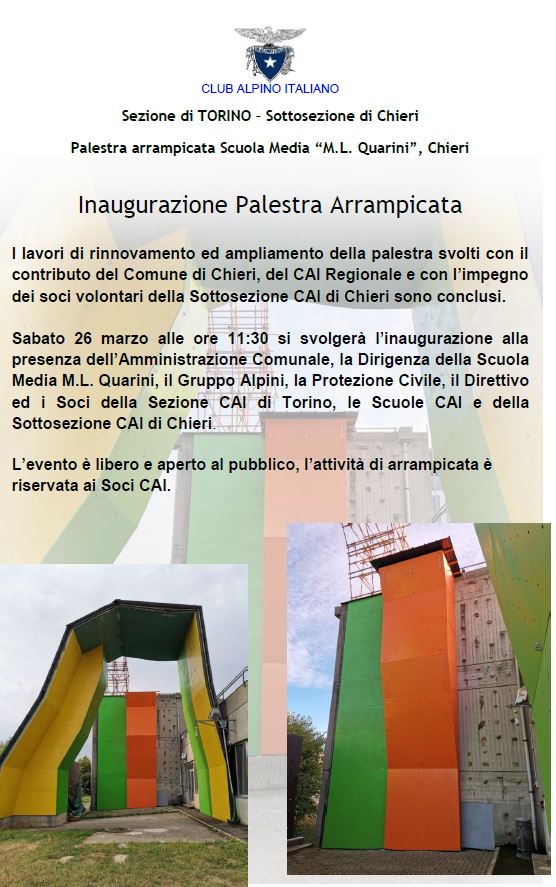 Chieri. Alla “Quarini” si inaugura la Palestra Arrampicata del CAI di Redazione · 25 Marzo 2022 Visto da: 198