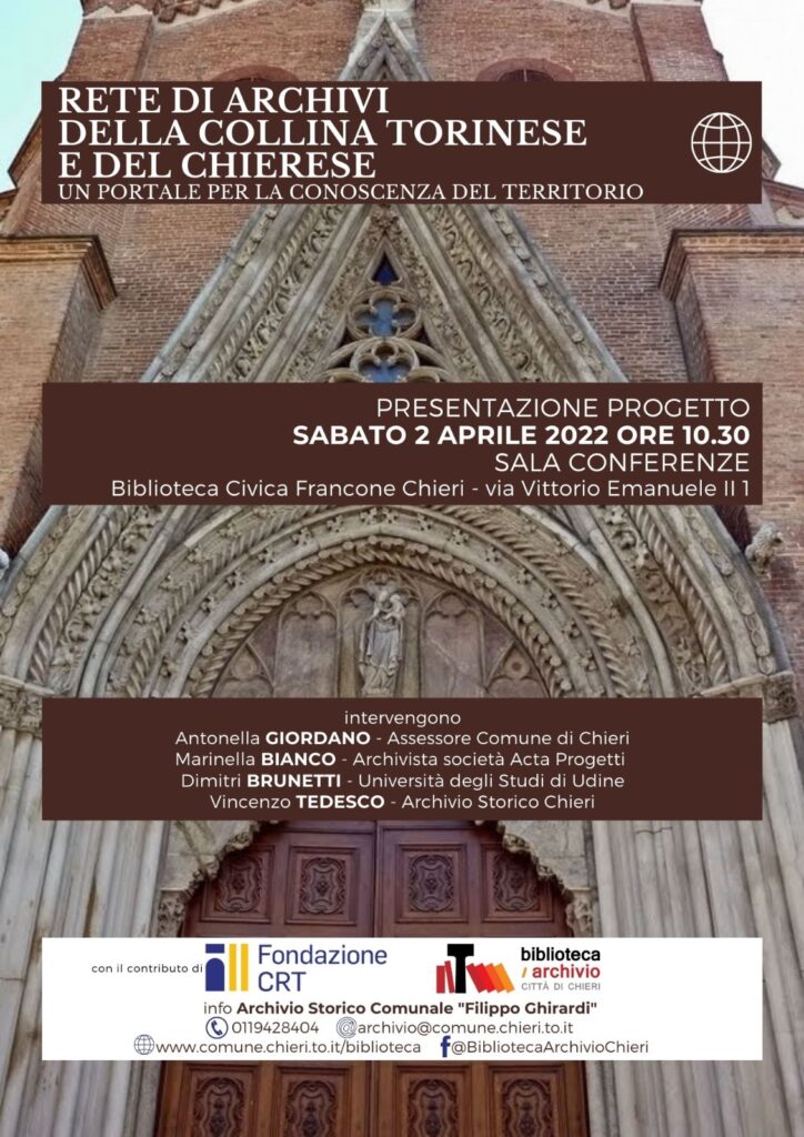 Chieri. Presentazione progetto Rete di Archivi della Collina Torinese e del Chierese. Un portale per la conoscenza del territorio di Redazione · 28 Marzo 2022 Visto da: 169
