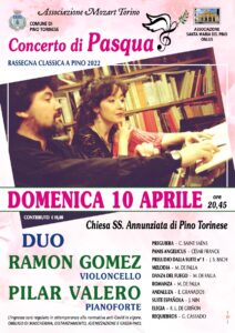 Continuano gli splendidi concerto proposti nella nuova edizione della rassegna “Classica a Pino” che da anni ormai porta a Pino Torinese musicisti di altissimo livello e di fama livello internazionale. Grazie all’impegno dell’Associazione Santa Maria del Pino e dell’Associazione Mozart Italia e con il contributo del Comune di Pino Torinese domani sera alle h. 20,45 suoneranno due musicisti spagnoli: Ramon Gomez al violoncello e Pilar Valero al pianoforte.
