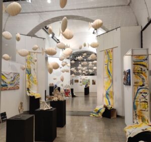 Chiude con successo la mostra patrocinata dal Comune di Collegno e da Città Metropolitana alla Sala delle Arti nel Parco della Certosa. Ultimo fine settimana, quello Pasquale, per visitare l’esposizione che ha avuto un ottimo gradimento da parte del pubblico Francesco Blaganó e Scalenghe Manuela espongono la loro opera contenente “ altre opere “. In questa istallazione la Sala delle Arti, spazio espositivo all’interno della Certosa Reale di Collegno, è diventata una sorta di acquario dove immergersi tra sculture, quadri, disegni che illustrano il periodo ormai più che decennale di ricerca spirituale dei coniugi/artisti. Centinaia di pesci in carta restituiscono simbolicamente il senso delle profondità marine in cui immergersi. Opera inclusiva è metafora di profondità spirituali. Appesi tra volta e pavimento gli oggetti dell’installazione, pesci in carta, le altre opere diventeranno così tesori in un mare in cui cercare ragioni e risposte. Ogni opera degli artisti ha un forte richiamo spirituale di connotazione cristiana e racconta sensazioni o concetti estrapolati dalle Sacre Scritture. I tesori di questa profondità sono prevalentemente creati con materiali di risulta o riciclo, come a dire, che nelle cose minime e scartate c’è il senso della grandezza dell’universo. I concetti in merito sono spesso rappresentati con opere realizzate in carta o materiale riciclato, unendo così il forte sentimento spirituale della mostra ai dettami etici contemporanei in merito al recupero e al riutilizzo dei materiali. In questo caso parafrasando l’attivista pro-ambiente Greta Thumberg dovremmo dire si! Bla..Bla…Bla. (Inteso come radice di Blaganò e Blaganò -Signora- ), poiché questo parlare non resta fine a se stesso, ma appartiene ad un percorso che cresce da anni che ora si fonde con il quotidiano narrando oggettivamente i tempi che viviamo. Infatti la mostra oltre ad essere patrocinata dal Comune di Collegno ( che ha inserito nel suo Piano di Offerta Formativa specifici laboratori tenuti dagli artisti, che spiegano agli scolari, come produrre qualcosa non di utile solamente, ma di valore – come un opera d’arte- da materiali di scarto) vede anche il sostegno del consorzio CIDIU e il patrocinio della Città Metropolitana di Torino.
