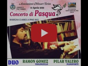 Ecco il video del bellissimo “Concerto di Pasqua”, tenutosi lo scorso 10 aprile presso la Chiesa della Santissima Annunziata di Pino Torinese nell’ambito della rassegna “Classica a Pino”. Si sono esibiti due musicisti spagnoli: Ramon Gomez al violoncello e Pilar Valero al pianoforte.A questo link si può vedere la registrazione del concerto https://www.youtube.com/embed/p89BOHA_abw