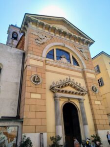 Fino ad allora aveva avuto nella facciata una sorta di piccolo portico o atrio, che sporgeva nell’attuale corso Cavour. Sorta la stazione ferroviaria e aumentato il traffico, il Municipio di Novara decise di ampliare il corso a danno della chiesa, compensando la confraternita del Gonfalone, patrona della chiesa, con il versamento di Lire 18.000. La chiesa fu quindi “accorciata” ad ovest di 4 metri e allungata ad est, con il conseguente arretramento del presbiterio e del coro. La nuova facciata fu in stile neoclassico (nella foto), quindi attualmente la chiesa della Santissima Trinità e di Santa Maria al Monserrato si presenta come un edificio neoclassico, che contiene decorazioni ed opere artistiche rinascimentali e barocche. Ma le testimonianze della presenza degli Spagnoli a Novara non terminano certamente qui ed avremo occasione di riparlarne.