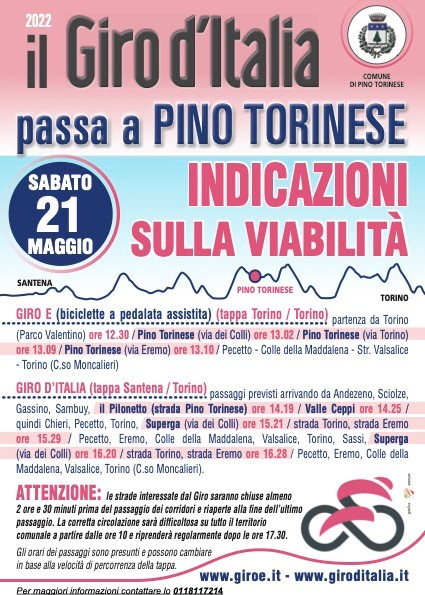 Pino Torinese. Indicazioni per la viabilità Sabato 21 maggio in occasione del passaggio del Giro d’Italia