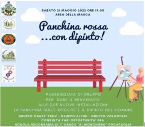 L’Amministrazione Comunale di Pocapaglia inaugurerà sabato 21 maggio alle ore 19,00 una panchina rossa che sarà sistemata nell’area ante la rocca della masca Micilina e una pittura raffigurante il territorio e le frazioni pocapagliesi. “E’ un evento che riveste un’importante significato per il nostro Comune” dichiara il Sindaco Riorda “ infatti la presenza della panchina rossa ricorderà a tutti i cittadini, ai turisti, ai passanti, giovani e meno giovani che la violenza sulle donne è ancora un problema irrisolto e di come può e deve essere affrontato dalla coscienza collettiva”. “Il Consiglio Comunale – conclude Riorda – ringrazia con sincero riconoscimento Taricco Gianfranco che prima ha realizzato e poi donato la panchina alla comunità pocapagliese, la Sivar per le vernici, la Nuova Sericart per le serigrafie, la ditta Tontine Peisino e Paria Marco per la posa del basamento. Interverranno la Presidente della Consulta delle pari opportunità Agata Comandè, il gruppo Cantè J’ieuv, alcune classi di studenti della Scuola Secondaria di 1°grado A. Monchiero, il gruppo Alpini. La serata si concluderà con l’inaugurazione del dipinto posizionato all’ingresso del Municipio ad opera della pittrice braidese Francesca Semeraro.