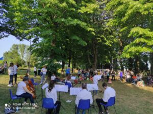 Comune e volontariato insieme a Chieri per la Camminata per la Pace, che giovedì scorso è partita da Piazza Europa per concludersi a Villa Brea con un piccolo, raffinato concerto dei giovani musicisti del Sermig diretti da da Mauro Tabasso. Nelle foto: il gruppo dei partecipanti, gli organizzatori (con l’assessore Elena Comollo) e il momento musicale finale.