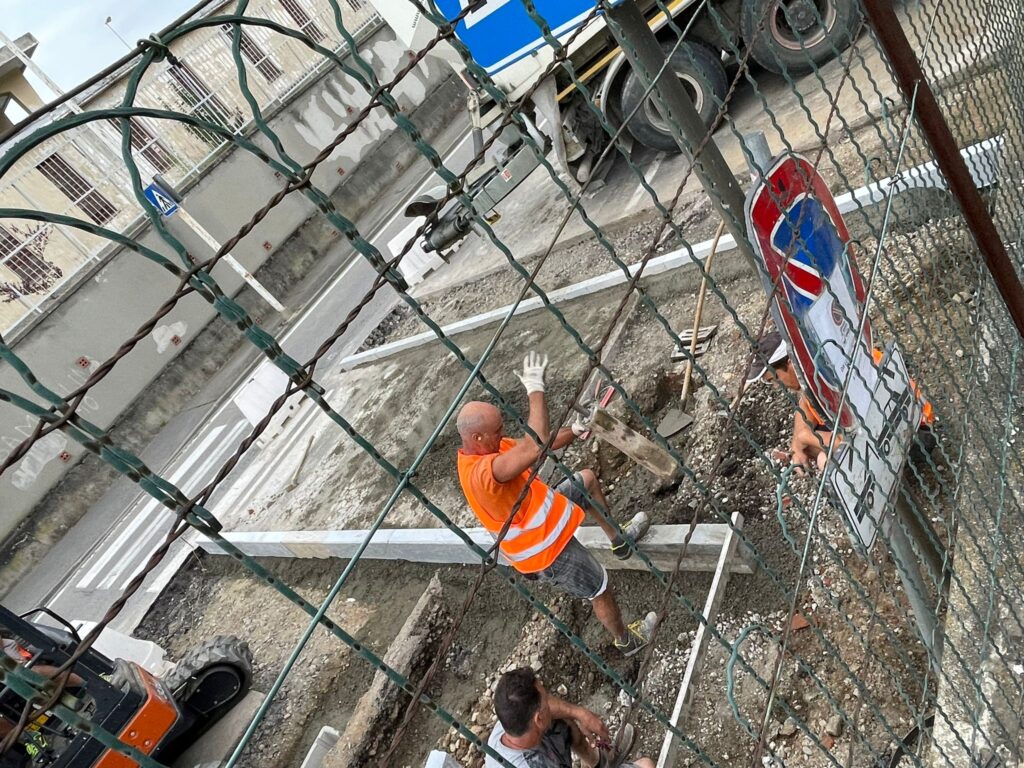 A Chieri, In viale Cappuccini angolo via del Vallo, lavori in corso, con semaforo e senso unico alternato, per l’esecuzione di un grande dosso artificiale al posto del passaggio pedonale, che dovrebbe rallentare il traffico su questa importante arteria di comunicazione con Pecetto Torinese (Foto e testo di Luciano Berruto)